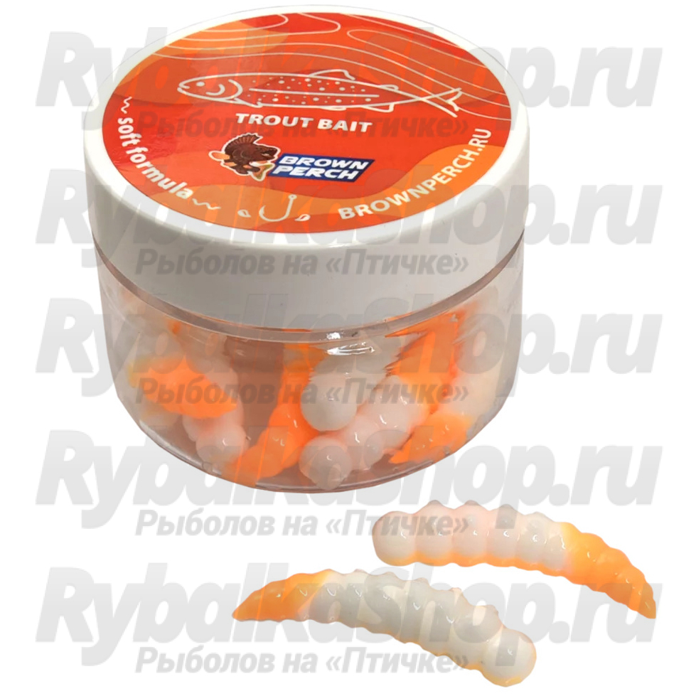 Brown Perch Bark Beetle Larva представляет собой в маленьком размере (34 мм) условную имитацию опарыша, а в крупном (45 мм) - личинки короеда, представляющих собой один из естественных природных кормов большинства водных обитателей. С правильной огрузкой, которая обеспечивает приманке близкую к нейтральной плавучесть, при анимации достаточно легкого шевеления кончиком удилища, чтобы спровоцировать рыбу на поклевку.