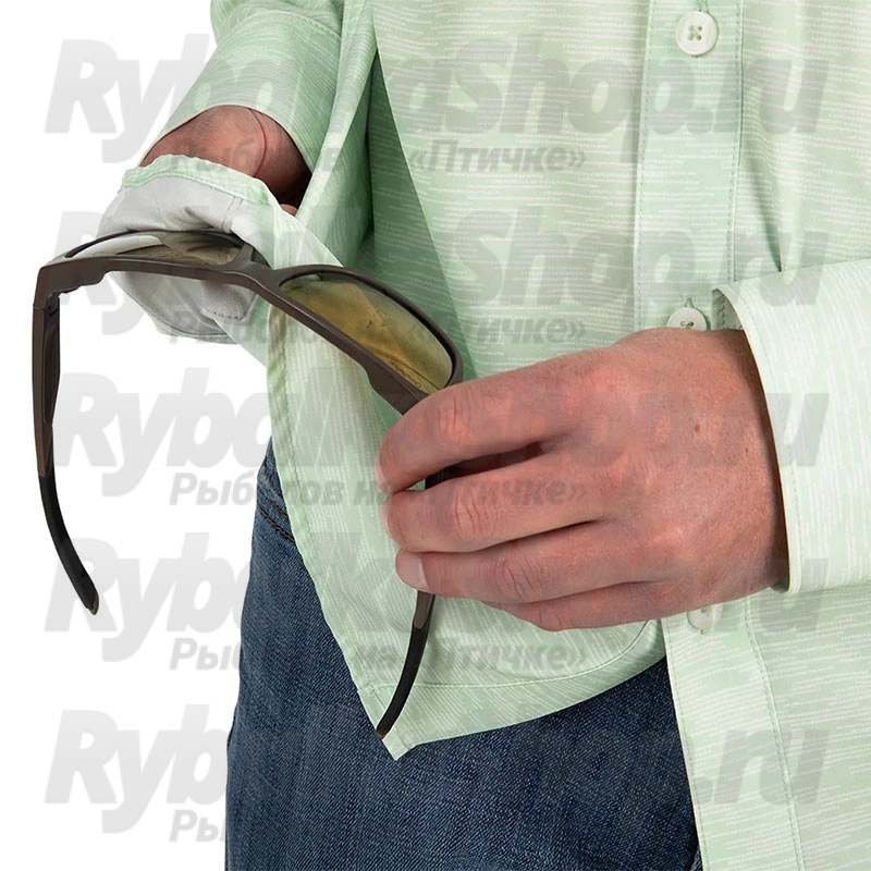 Рубашка Simms Double Haul LS Shirt, Lt.Green Texture Wave Print сочетает в себе стильный внешний вид, практичные возможности рыбалки и первоклассный комфорт!