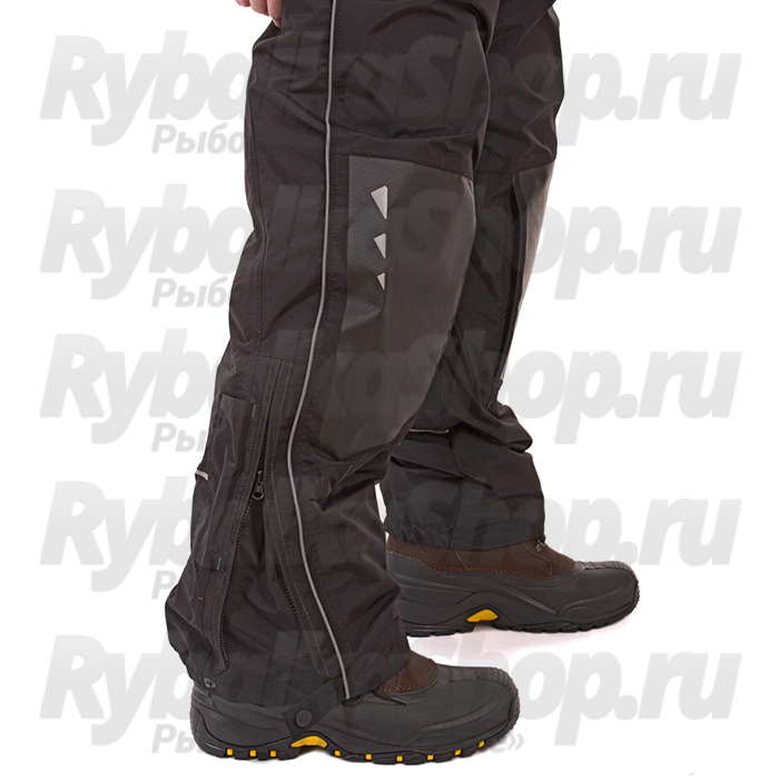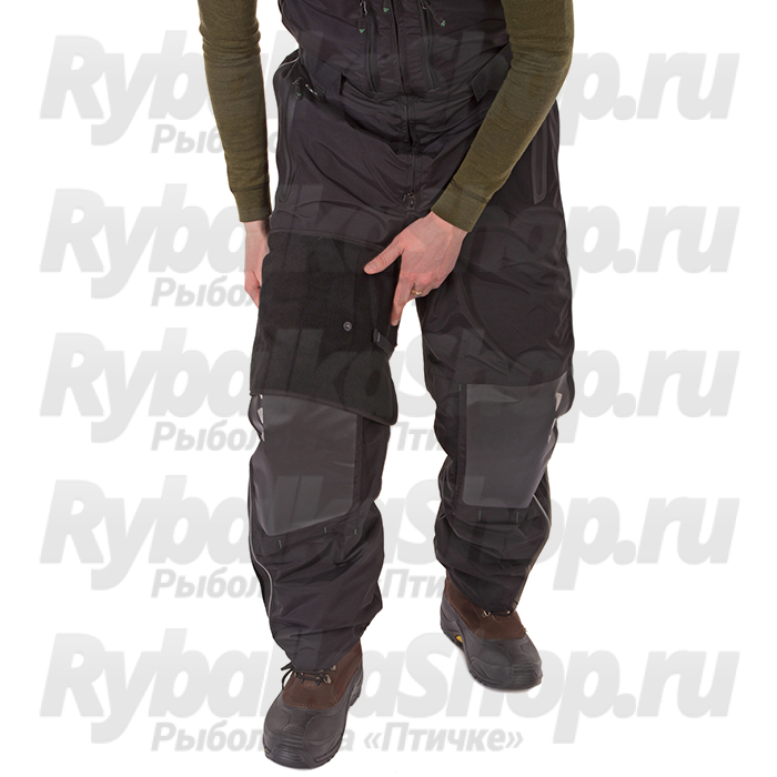 На высоком теплом полукомбинезоне в наколеннике есть специальные съемные вставки из ППЭ. Наколенник усилен дополнительно прочной термоустойчивой пленкой Protectfilm австрийского производства. Низ полукомбинезона имеет перфорацию на ткани для быстрого вытекания воды.