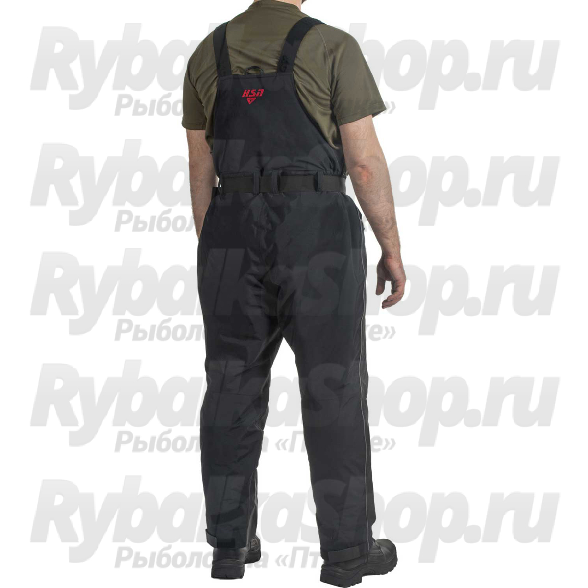 Полукомбинезон на съемных подтяжках, по бокам в поясе собран на резинку, имеет шлевки под ремень, который идет в комплекте. Увеличенная по высоте спинка позволяет более эффективно сохранять тепло. Объем низа голенища регулируется двухуровневыми застежками на липучках типа Велкро. Удобные и глубокие карманы, закрывающиеся на влагозащитные молнии, позволяют разместить множество необходимых на актином отдыхе предметов. Кроме того полукомбинезон оснащен полукольцами с карабинами для подвесных охотничьих инструментов.