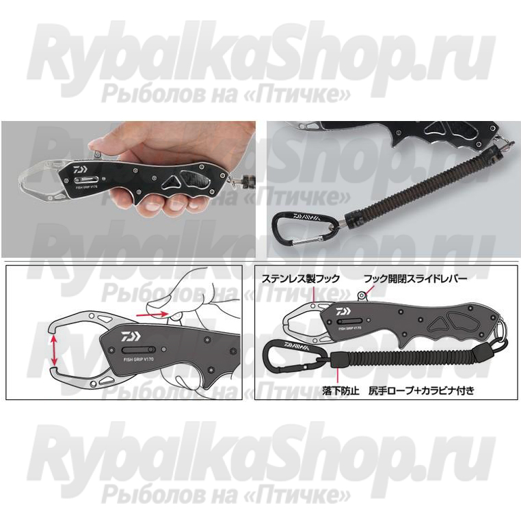 Захват для рыбы Daiwa Fish Grip V170 SV Данный рыболовный аксессуар помогает быстро извлечь из рыбы крючок не пачкая при этом руки в слизи. Модель имеет компактный размер, который отлично подойдет при ловле форели на платных водоемах, головля, окуня, некрупной щуки и тд., на небольших речках или озерах.