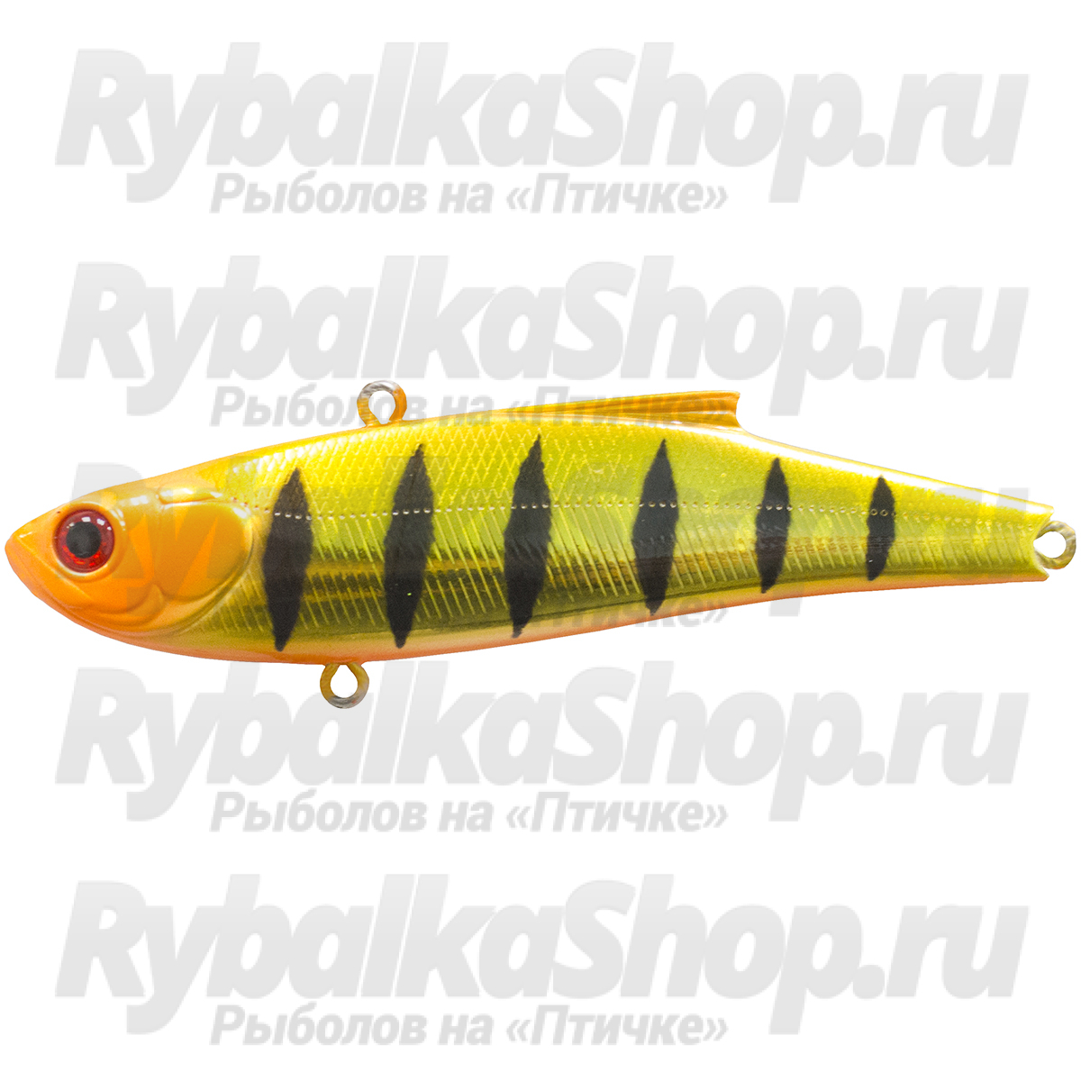 Воблер оснащается двумя мощными тройниками, которые надежно засекают рыбу и выдерживают серьезные нагрузки. Петелька, служащая точкой крепления с основной леской, расположена на спинке виба – это классический вариант для приманок подобного класса.