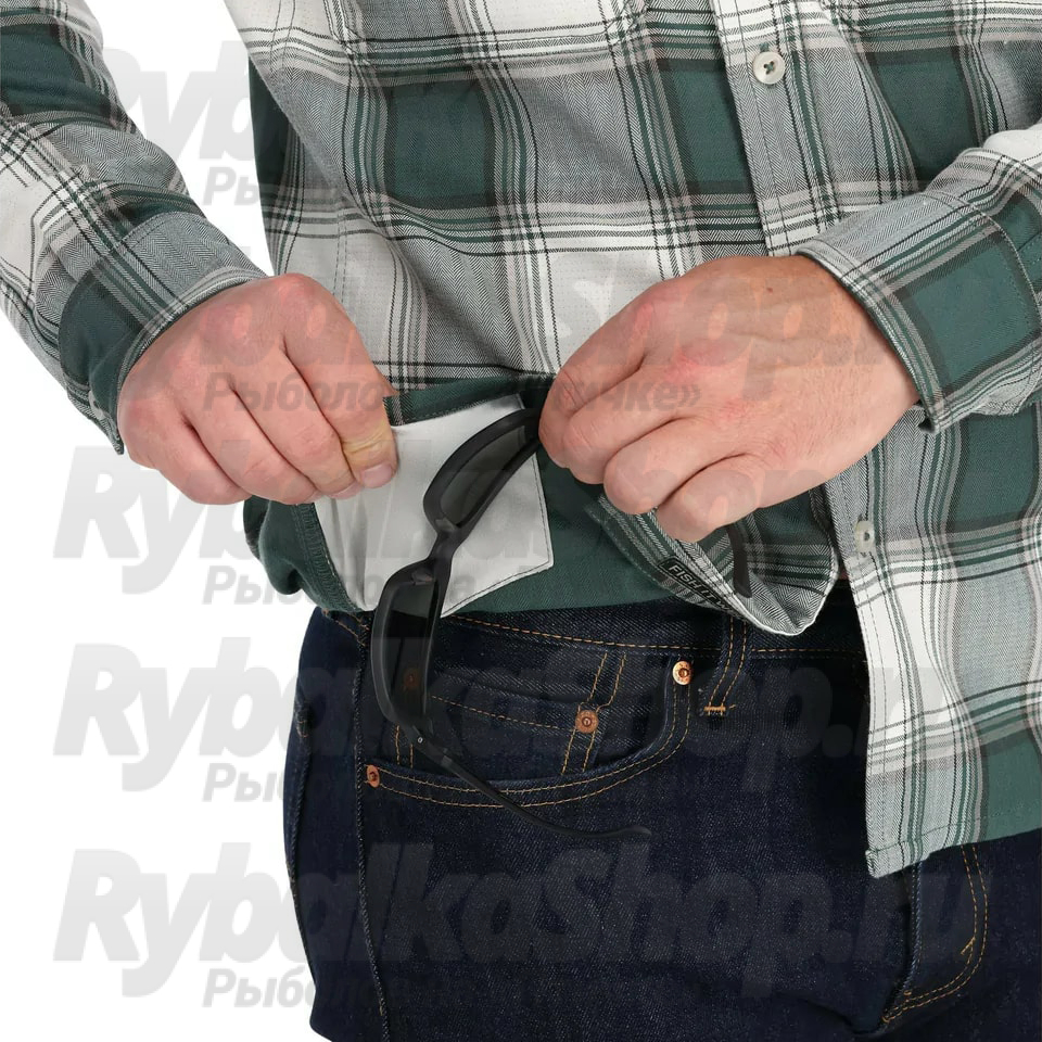 Легкая рубашка Simms Guide Flannel, Navy/White Dimensional Buffalo, изготовленная из высококачественной смеси переработанных тканей с функционалом для рыболовов. Это идеальная рубашка для повседневной носки и комфорта — на суше, на воде и где угодно.