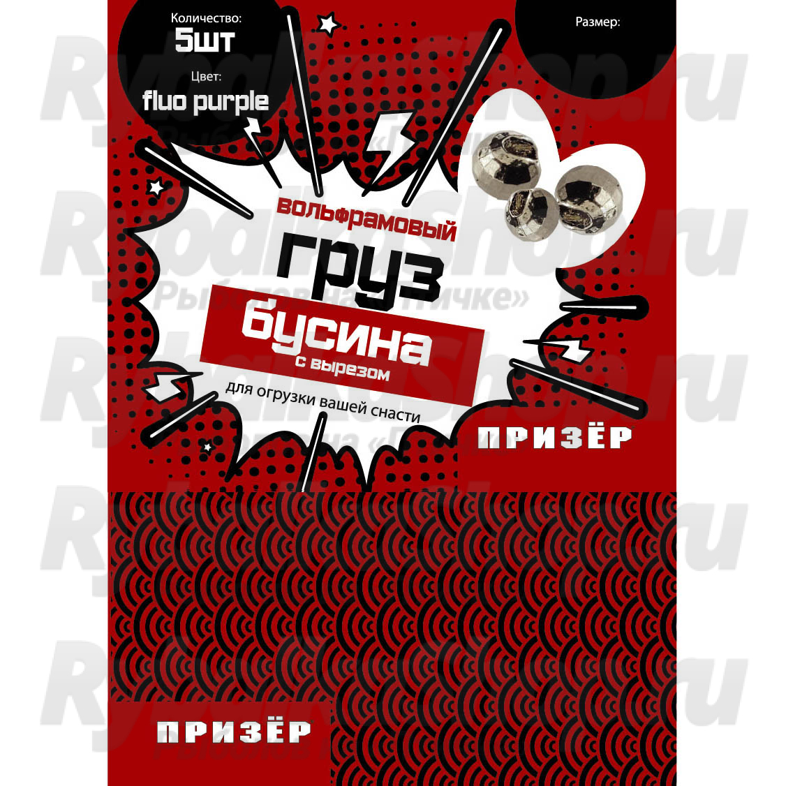 Диаметр бусин Призер - от 2.8мм до 5.5мм. Использование бусины с вырезом позволяет выделить центр тяжести в оснащенном крючке и более плотно посадить головку к ушку крючка.