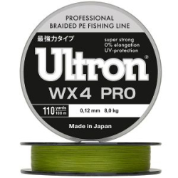 Шнур Ultron WX4 Pro имеет широкий диапазон диаметров - от 0,10 до 0,27 мм. и выпускается в нейтральном цвете "хаки" в двух размотках - 100 и 137 метров. Рекомендован для ловли спиннингом, особенно на джиг, а также для фидера и пикера. Оптимальное соотношение "цена-качество".