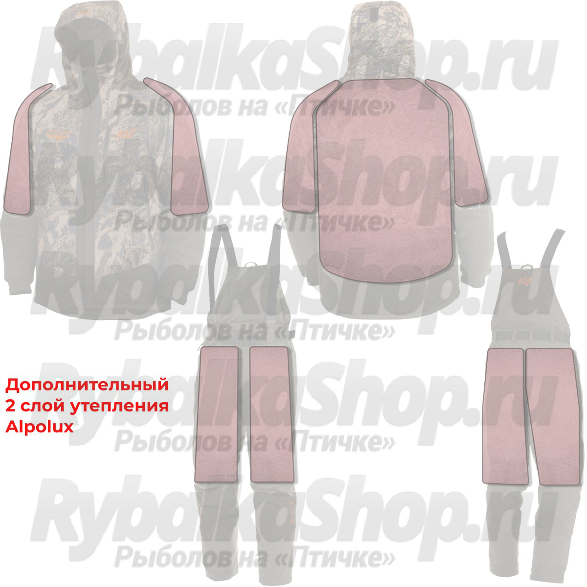 Утеплитель костюма Альполюкс (Alpolux) - этот утеплитель разработан в Австрии, состоит из полиэфирных микроволокон и натуральной шерсти мериноса. Шерсть мериноса повышает качества теплоизоляции, прочности, придаёт лечебные свойства и делает его оригинальным. Альполюкс (Alpolux) - каландрированный утеплитель, что придаёт ему прочность, способность лучше удерживать тепло и препятствует миграции волокон сквозь ткань.
