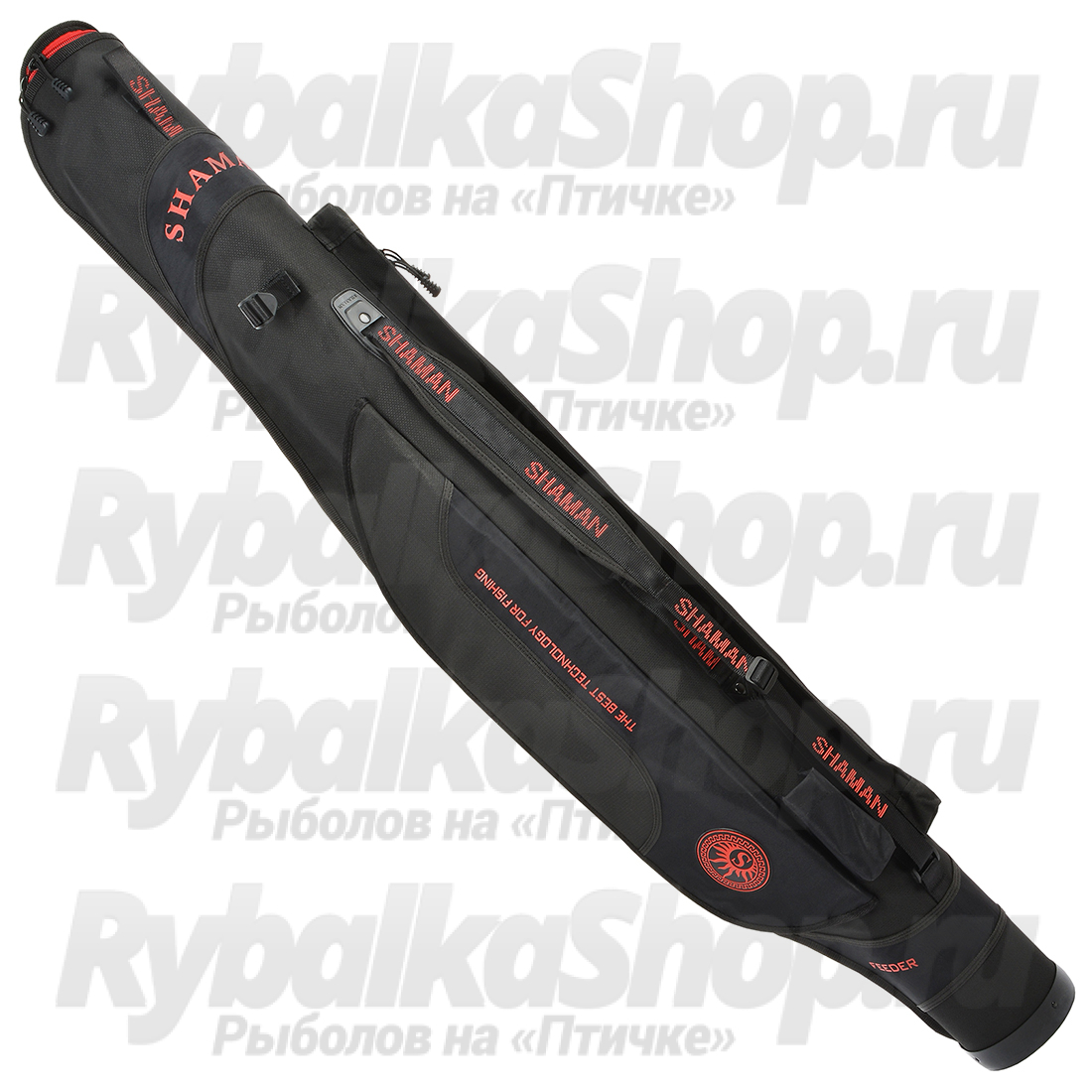 Чехол жесткий SHAMAN 7000 Feeder/Spinning с перегородкой, черный (красный логотип) (160 диаметр, 150 длина)
