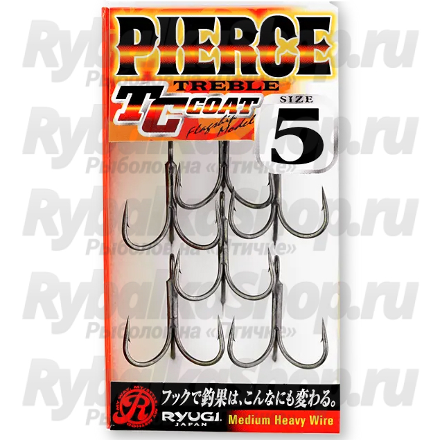 Поверхность крючка Ryugi Pierce Treble защищает покрытие TC Coat. Это собственная разработка бренда. Покрытие не только продлит срок службы оснастки, но и обеспечивает большую гладкость и как следствие высокую проникающую способность.