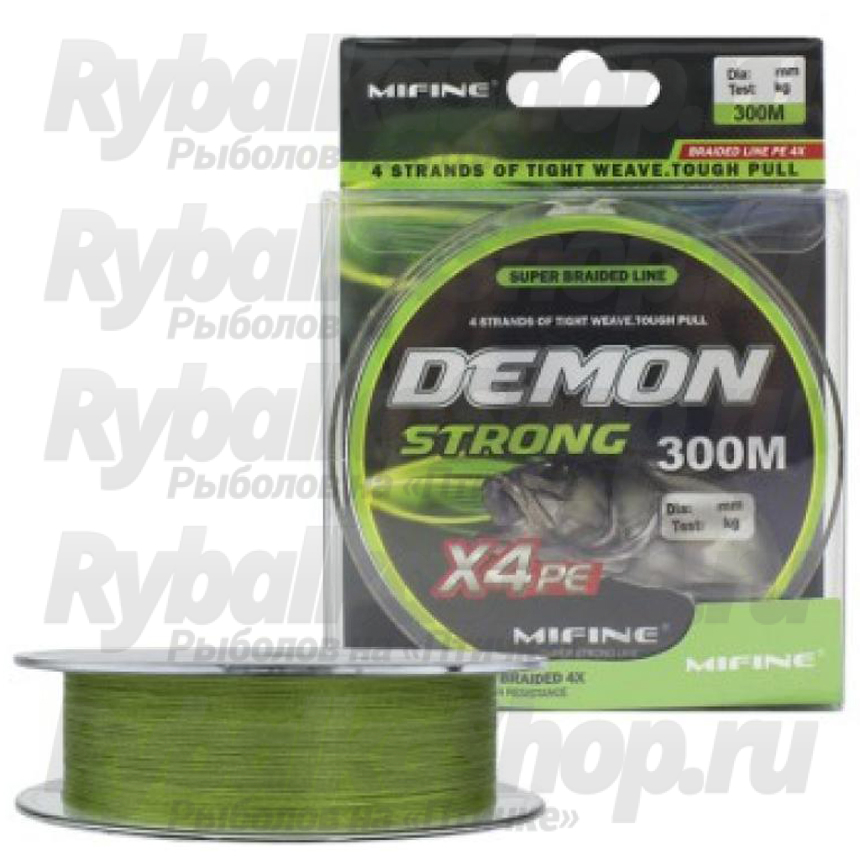 Серия плетеных шнуров Mifine Demon Strong X4 отличается пониженным коэффициентом трения, а также имеет достаточно гладкую поверхность, обеспечивающую лучшее скольжение. Шнур имеет плотное плетение из высококачественного PE волокна. Эти серии шнуров имеют хорошую устойчивость к абразиву и отличаются низкой растяжимостью. Шнуры Mifine обеспечивают отличную тактильную передачу, а также позволяют полностью контролировать оснастку. Плетенка имеет отличную устойчивость к нагрузкам и разрывам, а также хорошо держит узел. Плетенка Mifine выпускается в большом разнообразии диаметров и цветов, что позволяет подобрать оптимальный шнур для самых разных условий ловли.