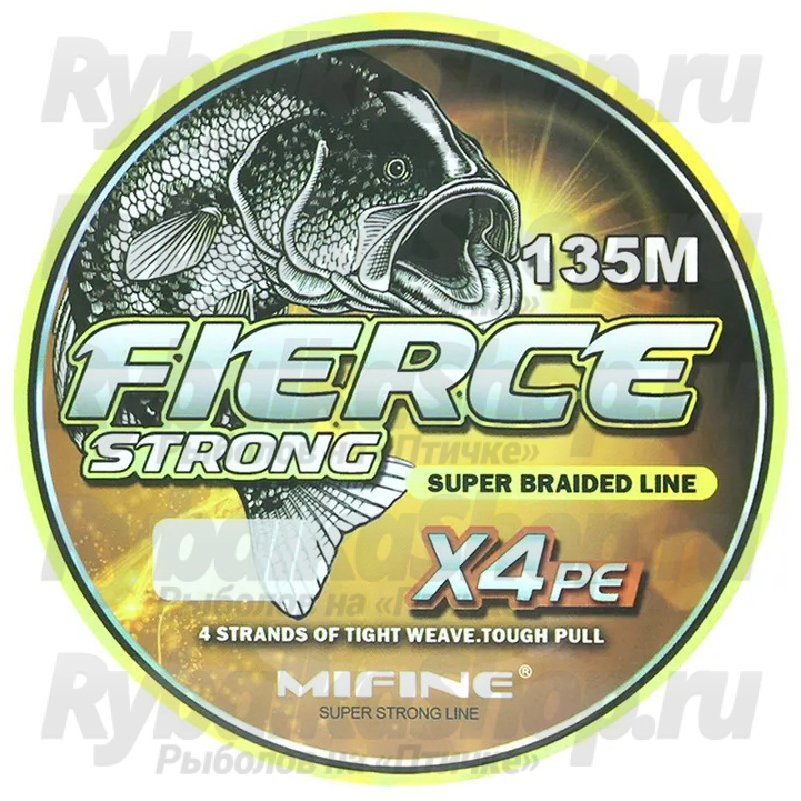 Серия плетеных шнуров Mifine Fierce Strong X4 отличается пониженным коэффициентом трения, а также имеет достаточно гладкую поверхность, обеспечивающую лучшее скольжение. Шнур имеет плотное плетение из высококачественного PE волокна. Эти серии шнуров имеют хорошую устойчивость к абразиву и отличаются низкой растяжимостью. Шнуры Mifine обеспечивают отличную тактильную передачу, а также позволяют полностью контролировать оснастку. Плетенка имеет отличную устойчивость к нагрузкам и разрывам, а также хорошо держит узел. Плетенка Mifine выпускается в большом разнообразии диаметров и цветов, что позволяет подобрать оптимальный шнур для самых разных условий ловли.