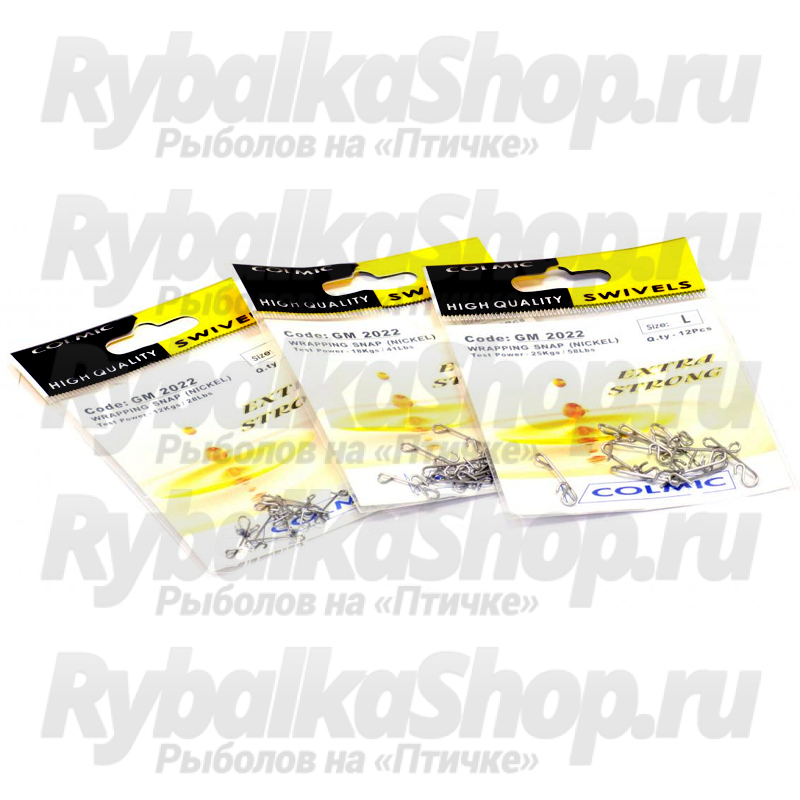 Застежка Colmic Wrapping Snap Для крепкого соединения деталей оснастки известный итальянский бренд Colmic предлагает модель безузловой застежки Wrapping Snap. Эта модель предназначена для довольно существенной нагрузки: максимальный размер (L) способен выдержать до 25 кг. Упаковка содержит 12 застежек. Wrapping Snap обработана особым покрытием из никеля, которое делает деталь долговечнее.