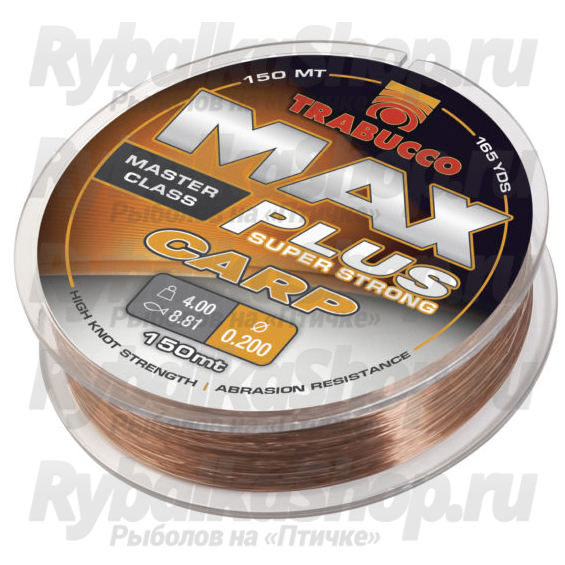 Trabucco MAX PLUS CARP - узкоспециализированная леска, в основном ориентированная для ловли карпа и другой крупной рыбы, благодаря своей огромной стойкости к истиранию и прочности узлов. Кроме того, низкая память и слабое растяжение позволяют совершать быстрые и точные подсечки, а также улучшают фиксирование малейшей поклевки.