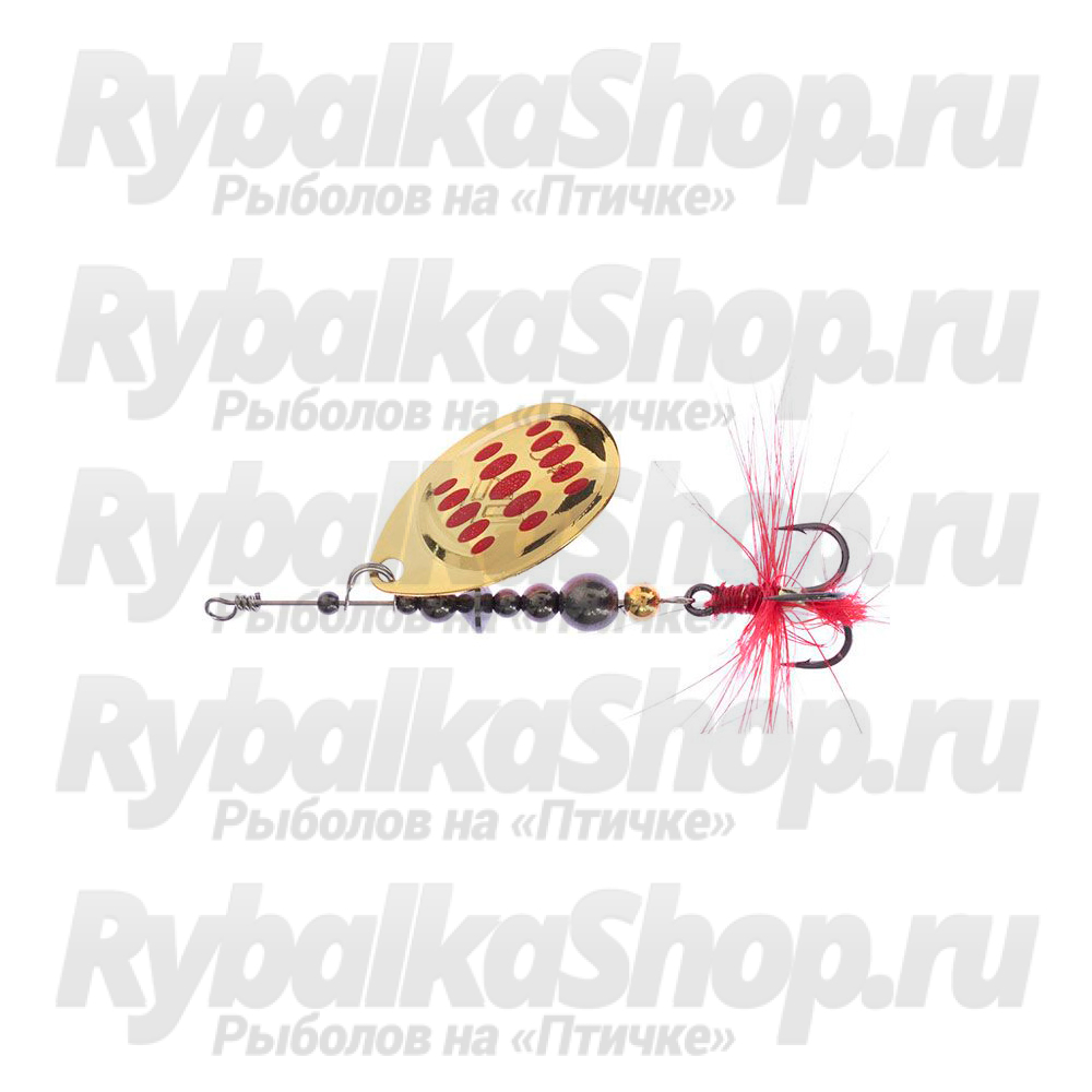 Блесна вращающаяся Mikado Hypnotic №0 - GOLDEN RED (2,7г.; тройник BKK) с красной кисточкой