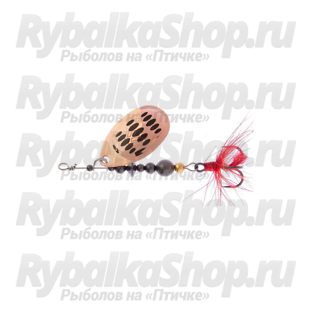 Блесна вращающаяся Mikado Hypnotic №2 - COOPER BLACK (4,3г.; тройник BKK) с красной кисточкой