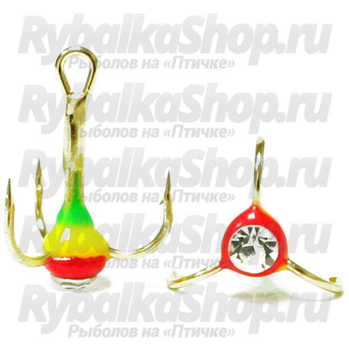 Крючки ''Тройник ''Капля'' №8, Золото, цвет 30 зелено-желто-красный+белый страз, VD-092C (BN)'', 10 шт/уп