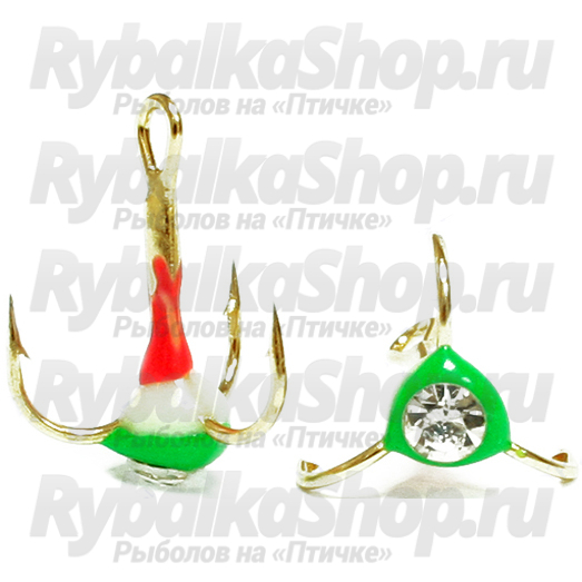 Крючки ''Тройник ''Капля'' №8, Золото, цвет 31 красно-люминисцентно-зеленый+белый страз, VD-092C (BN)", 10 шт/уп