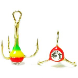 Крючки ''Тройник ''Капля'' №6, Золото, цвет 31 красно-люминисцентно-зеленый+белый страз, VD-092C (BN)'', 10 шт/уп