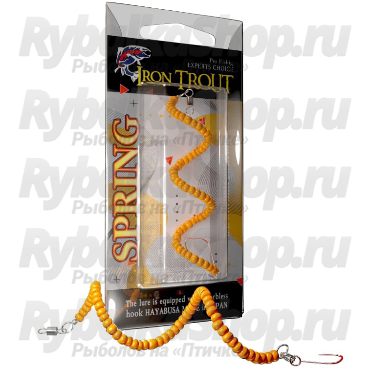 Iron Trout Spring - тонущая приманка спиралевидной формы. При проводке совершает вращательные движения вокруг своей оси. Движения приманки очень похожи на плывущего натурального червя. Отлично ловит как активную, так и пассивную форель. Изменяя длину, количество и размер витков можно добиться разнообразной игры приманки которая вынудит на поклевку самую привередливую рыбу. Отдельные модели на окончании оснащены крупными шариками 6-8 мм (точка атаки) для более эффективной ловли.