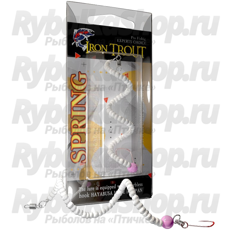Iron Trout Spring - тонущая приманка спиралевидной формы. При проводке совершает вращательные движения вокруг своей оси. Движения приманки очень похожи на плывущего натурального червя. Отлично ловит как активную, так и пассивную форель. Изменяя длину, количество и размер витков можно добиться разнообразной игры приманки которая вынудит на поклевку самую привередливую рыбу. Отдельные модели на окончании оснащены крупными шариками 6-8 мм (точка атаки) для более эффективной ловли.