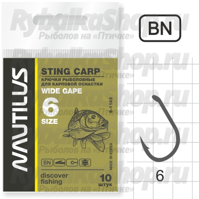 Крючок Nautilus Sting Carp Wide gape S-1143BN № 6