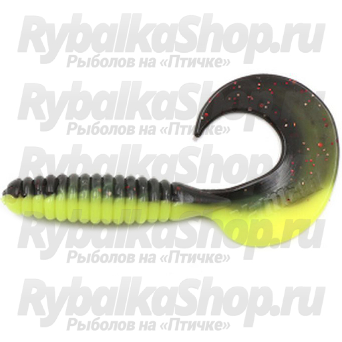 Силиконовая приманка Yaman Pro Spiral 4" цвет #32 - Black Red Flake/Chartreuse (уп.5 шт)