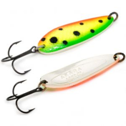Блесна колебалка Akara Action Series Laxa имеет большой весовой ряд в двух размерах. В зависимости от размера и веса, колебалка может быть использована для ловли на небольших речах в заброс (13, 17 и 18г), а так же троллингом на озерах. Веса 21, 24 и 28 г могут быть использованы для ловли на среднем и быстром течении, а в случае необходимости при ловле на глубине. Прогонистое тело блесны и классический изгиб позволяет существенно менять скорость проводки, а так же использовать рывковую проводку. На паузе Laxa хорошо сыпется. Широкая цветовая гамма состоит из пищевых и раздражающих расцветок, что позволяет подобрать цвет под конкретные условия лова: активность хищника, освещенность и прозрачность воды.