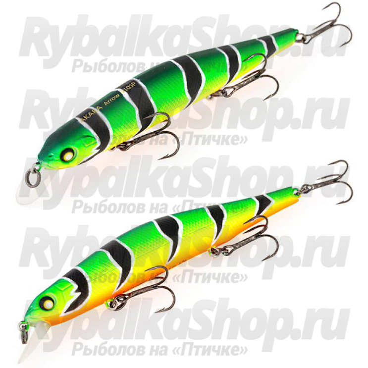 Минноу Akara Arrow предназначен для твичинга. Обладает нейтральной плавучестью, во время паузы зависает в своем рабочем горизонте. Это свойство хорошо действует на пассивного хищника. Приманка оснащена тремя крючками VMC. Заглубление Arrow – от 0 до полутора метров. Длина приманки – 110 мм, вес – 17 гр. Приманка отлично летит благодаря системе дальнего заброса. Легко управляется на проводке, воблер не очень упористый за счет небольшой лопасти. Контроль проводки не вызовет никаких проблем. Применять Arrow можно на водоеме любого типа. Основной объект охоты – щука. Размер воблера позволяет охотиться на достаточно крупных особей, но и не отсекать средних. В серии есть модели как с провоцирующей окраской, так и с более нейтральной – в зависимости от условий ловли можно выбрать наиболее подходящий вариант.