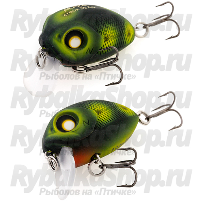 Akara Crook 35F - плавающий воблер класса кренк длиной 35 мм. Благодаря компактной форме и весу 6 грамм, имеет отличные полетные качества. В первую очередь предназначен для ловли жереха, голавля, язя на реках. Отлично держит течение, не сбиваясь с игры. Заглубление от 0 до 0,2 м. Оснащен крючками из высокоуглеродистой стали. Новинка 2019 года.