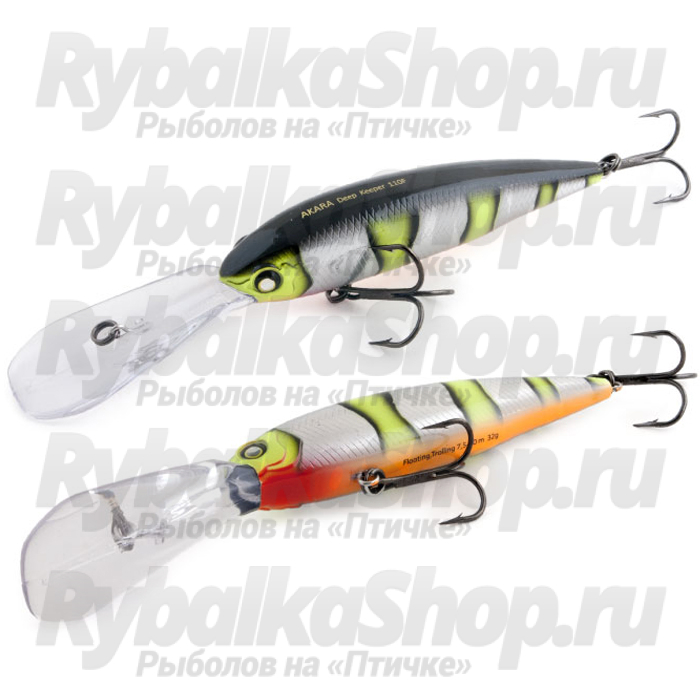 Akara Deep Keeper 110F - воблер для ловли троллингом на глубинах до 10 метров. Широкая, размашистая игра отличается стабильностью на разной скорости проводки. Удлиненная, мощная лопасть позволяет приманке быстро достигать требуемого рабочего горизонта и избегать зацепов об дно. Плавающий. Акустический. Заглубление при троллинге 7,5 до 10,0 м.