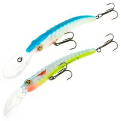 Akara Deep Snoop 120F - глубоководный троллинговый воблер, разработан для ловли донной рыбы на глубинах до 6 метров. Этот оригинальный воблер обладает высокочастотной игрой, а выгнутая форма тела с ребрами по бокам, создает дополнительные колебания, которые привлекает рыбу с больших расстояний. Рассчитан на ловлю судака и щуки, сома. Заглубление при троллинге от 5,0 до 6,0 м.