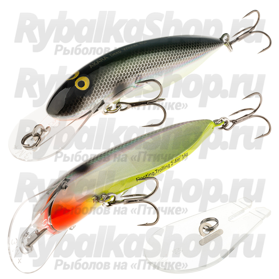 Akara Deep Winner 85F - крупная троллинговая приманка для ловли на глубинах до 8 метров.Имеет игру средней амплитуды. Подходит для ловли судака, сома, трофейной щуки. Комплектуется дополнительной лопаткой для разных заглублений. Плавающий. Акустический. Заглубление при троллинге от 5,0 до 8,0 м.