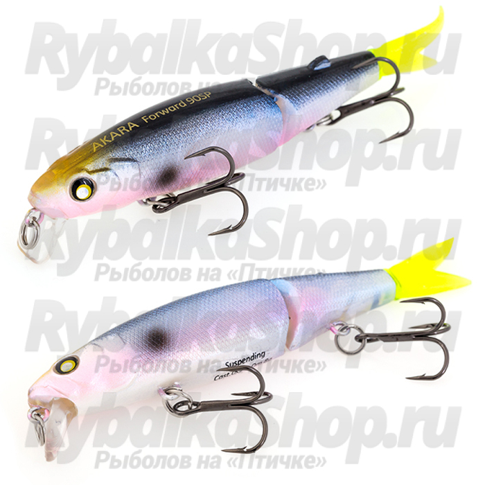 Akara Forward 90SP – двухсоставной воблер нейтральной плавучести (SP) класса минноу. Вес 8 грамм. Имеет маленькую лопасть, что позволяет заглубляться данной приманке от 0,5 до 1,0 м. Отлично подходит для облавливания небольших глубин, окошек в водной растительности. Щука и окунь являются основными объектами ловли этим воблером. Обладает стабильной игрой на рывковых проводках, также работает на равномерной. Оснащен крючками из высокоуглеродистой стали.