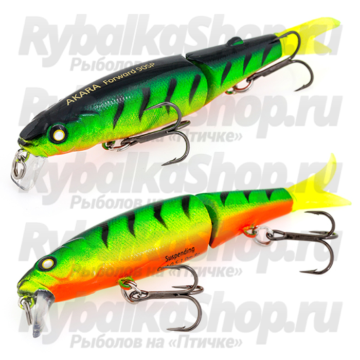 Akara Forward 90SP – двухсоставной воблер нейтральной плавучести (SP) класса минноу. Вес 8 грамм. Имеет маленькую лопасть, что позволяет заглубляться данной приманке от 0,5 до 1,0 м. Отлично подходит для облавливания небольших глубин, окошек в водной растительности. Щука и окунь являются основными объектами ловли этим воблером. Обладает стабильной игрой на рывковых проводках, также работает на равномерной. Оснащен крючками из высокоуглеродистой стали.