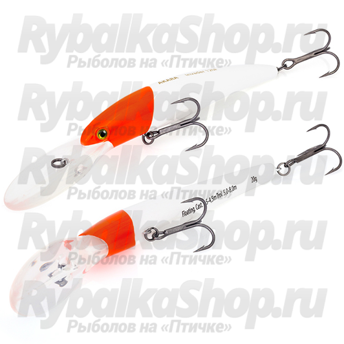 Akara Invader 120F - воблер для ловли на средних и больших глубинах. Обладает характерной рыскающей игрой, что вкупе с шумовым эффектом показывает отличные результаты при ловле щуки, сома и крупного судака. Плавающий. Акустический.Заглубление при кастинге от 3,5 до 4,5 м, при троллинге от 5,0 до 8,0 м.