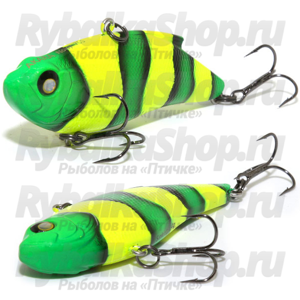 Akara Noisy - воблер является классическим зимним воблером, и как у остальных приманок данного класса, крепежное отверстие для лески расположено на спине. Воблер шумовой, оборудован двумя тройниками и выпускается в трех типоразмерах: 75 и 85 миллиметров. Основной особенностью данной приманки является уникальная, очень качественная и реалистичная игра, причем воблер прекрасно играет как на горизонтальной летней, так и на вертикальной зимней проводке. При вертикальной Akara Noisy игре прекрасно собирает рыбу с дальних расстояний и провоцирует её на поклевку. Воблер окрашивается как в классические, так и в яркие, раздражающие цвета, что позволяет выбрать приманку, подходящую для любых условий лова. Дополнительную эффективность приманке придает то, что при окраске применяются краски с UV эффектом.