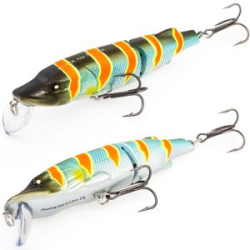 Pike Two 100F - оригинальная, двухсоставная, приманка в форме щуренка. Воблер заводится с первых сантиметров проводки и имитирует своей игрой раненую или больную рыбку, чем привлекает хищника. Хорошо ловит при простой равномерной проводке, или при плавных подтяжках с небольшими рывками перед паузой. Плавающий. Акустический. Заглубление при кастинге 0 до 1,0 м.