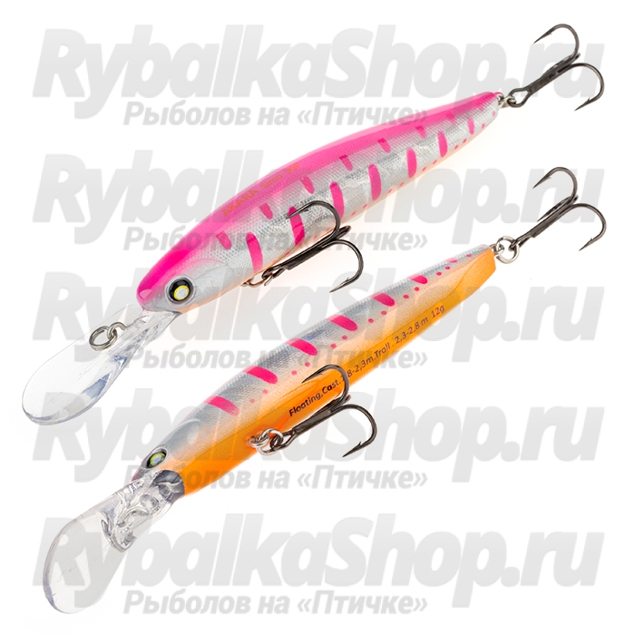 Воблер Akara Sima 90F - универсальный воблер для ловли в заброс и троллингом. Обладает превjсходными полетными характеристиками и хорошо держит струю, что сделало эту приманку популярной среди любителей ловли лосося. При троллинге воблер показывает равномерную размашистую игру, хорошо держит горизонт проводки. Заглубление при кастинге от 1,8 до 2,3 м, при троллинге 2,3 до 2,8 м.
