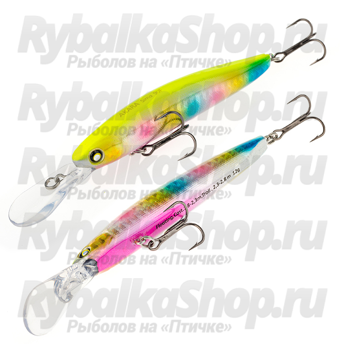 Воблер Akara Sima 90F - универсальный воблер для ловли в заброс и троллингом. Обладает превjсходными полетными характеристиками и хорошо держит струю, что сделало эту приманку популярной среди любителей ловли лосося. При троллинге воблер показывает равномерную размашистую игру, хорошо держит горизонт проводки. Заглубление при кастинге от 1,8 до 2,3 м, при троллинге 2,3 до 2,8 м.