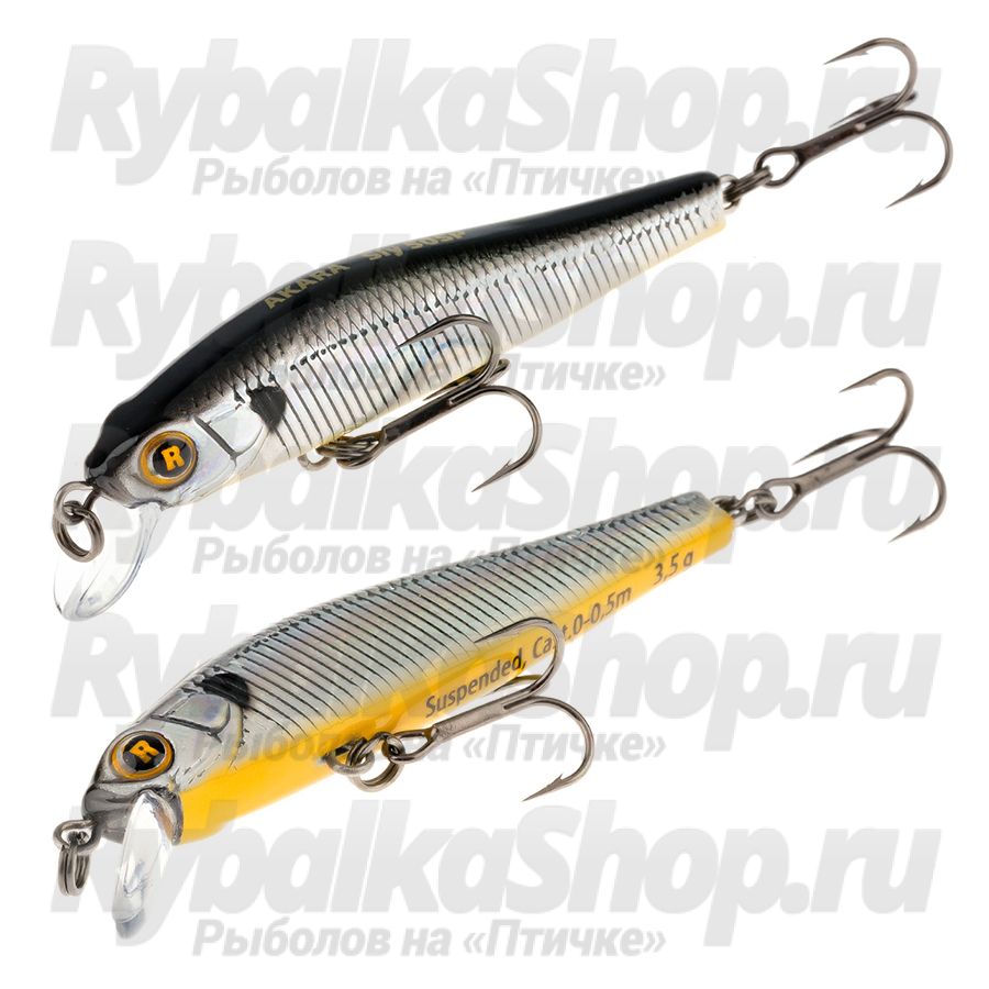 Akara Sly 50SP - свое время воблеры такого типа произвели настоящий фурор на соревнованиях. Подобные миношки настолько хорошо ловили окуня, что пришлось вводить ограничения по количеству особей в улове. Классическая проводка воблера - это агрессивный хаотичный твичинг. При этом приманка изображает бросающегося из стороны в сторону малька, потерявшего ориентацию в пространстве. Воблер Akara Sly 50SP будет хорошо работать и при более плавных движениях. На резких и агрессивных рывках воблер идет в 30-40 см от поверхности воды, а на плавных и протяжках его можно заглубить почти до одного метра. Нейтральная плавучесть делает эту модель неотразимой на паузах. Если же тройники поменять на более легкие, то воблер будет медленно всплывать, давая возможность сделать деликатную проводку над подводными зарослями, где часто прячется хищник. Акустический. Суспендер. Кастинг 0 до 0,5 м.