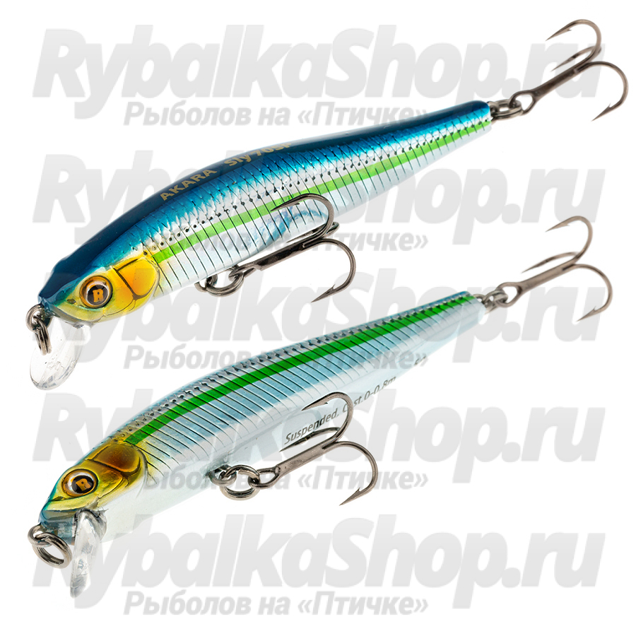 Akara Sly 70SP - это классика твичинга. Идеально работает на любой рывковой проводке. На резких и агрессивных рывках воблер идет в 30-40 см от поверхности воды, а на плавных и протяжках его можно заглубить до одного метра. Нейтральная плавучесть делает эту модель неотразимой на паузах. При этом надо понимать, что с металлическим поводком воблер будет слабо погружаться, что впрочем, часто является дополнительным раздражением для хищника. Если же тройники поменять на более легкие, то воблер будет медленно всплывать, давая возможность сделать деликатную проводку над подводными зарослями, где часто прячется хищник. Металлические шарики в корпусе воблера создают при проводке акустический эффект, делая приманку более заметной добычей. Суспендер. Кастинг 0 до 0,8 м.
