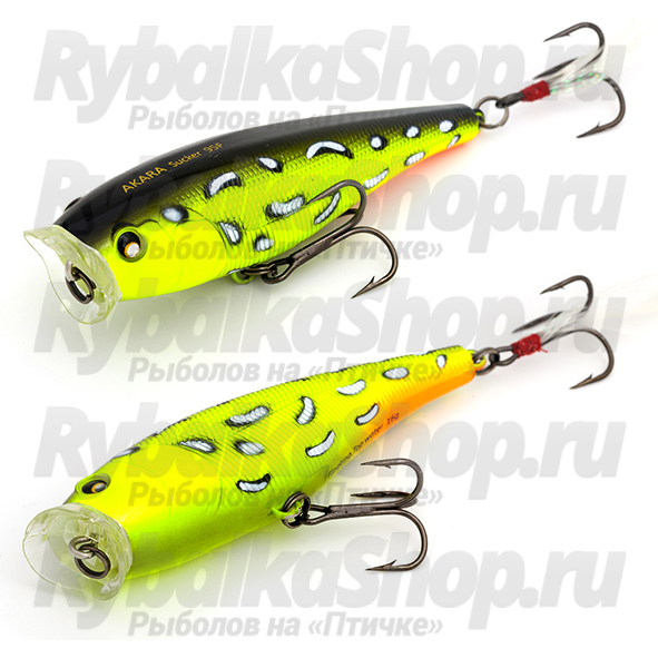 Akara Sucker 95F - крупный поппер, отличающийся громким шумовым эффектом при рывковой проводке. Обладает отличными полетными характеристиками благодаря значительному весу и обтекаемой форме тела. В первую очередь предназначен для облова мелководных, заросших участков водоемов любых типов в летнее и осеннее время. Основные хищники, реагирующие на данную приманку - это щука и окунь. Плавающий. Поверхностный.