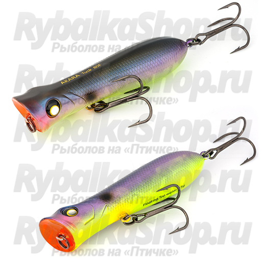 Akara Tusk 80F - поппер имеющий аэродинамическую форму, позволяющий выполнять дальние и точные забросы. Благодаря глубокой выемке в передней части приманки создает громкие звуки и при рывковой проводке и активно разбрызгивает воду перед собой. Также оставляет характерный след на поверхности. В сумме эти факторы являются отличными раздражителями практически для любой хищной рыбы, в первую очередь для щуки и окуня. Наибольшую эффективность поппер проявляет при ловле над зарослями травы. Плавающий. Поверхностный.
