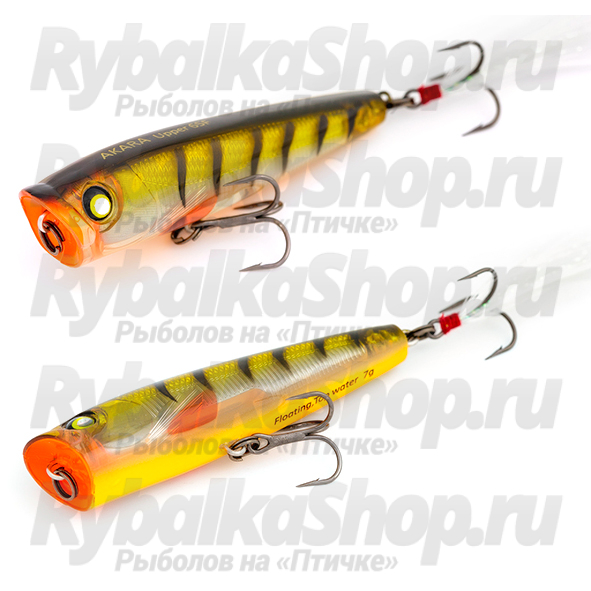 Akara Upper 65F - поверхностный воблер класса поппер. Имеет вытянутое тело и оперение заднего тройника. За счет обтекаемой формы отлично ведет себя на забросе. Классическая выемка в головной части создает громкие звуки и стабильные завихрения в воде. Akara Upper 65F является незаменимой приманкой при облове сложных участков водоема. Основной добычей этого поппера становятся щука и окунь, но не исключена поимка и мирных видов рыб. Плавающий. Поверхностный.