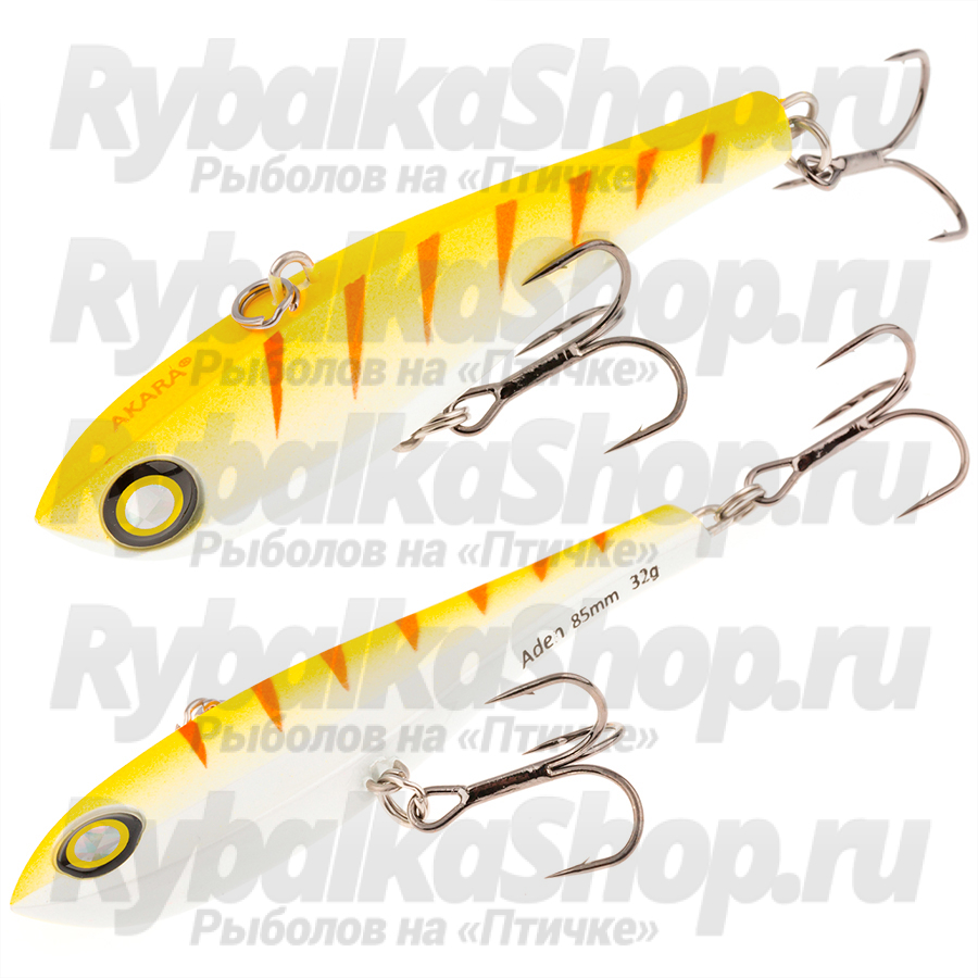 Раттлин Akara ADEN выпускается в трех размерах: 52 мм и вес 10 грамм, 68 мм и 16 грамм, 85 мм и 32 грамма. Приманка отлично подходит для ловли, как зимой, так и летом. Отличительной особенностью при ловле в отвес, является планирующая игра на боку. То есть, после потяжки, Aden заваливается на бок и в таком положении опускается. При ловле в заброс обладает высокочастотными колебаниями способными привлечь хищника с дальних расстояний. Раттлин Akara ADEN способен ловить любую хищную рыбу, имеющуюся в водоеме. Особенно хорошо ловит судака. А в 68 размере, подойдет и для ловли прудовой форели. Оригинальное голографическое покрытие, дает дополнительное преимущество и несомненно привлекает рыбу.