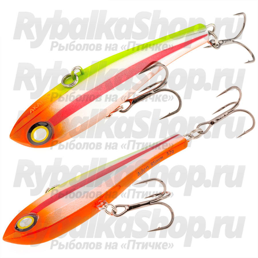 Раттлин Akara ADEN выпускается в трех размерах: 52 мм и вес 10 грамм, 68 мм и 16 грамм, 85 мм и 32 грамма. Приманка отлично подходит для ловли, как зимой, так и летом. Отличительной особенностью при ловле в отвес, является планирующая игра на боку. То есть, после потяжки, Aden заваливается на бок и в таком положении опускается. При ловле в заброс обладает высокочастотными колебаниями способными привлечь хищника с дальних расстояний. Раттлин Akara ADEN способен ловить любую хищную рыбу, имеющуюся в водоеме. Особенно хорошо ловит судака. А в 68 размере, подойдет и для ловли прудовой форели. Оригинальное голографическое покрытие, дает дополнительное преимущество и несомненно привлекает рыбу.