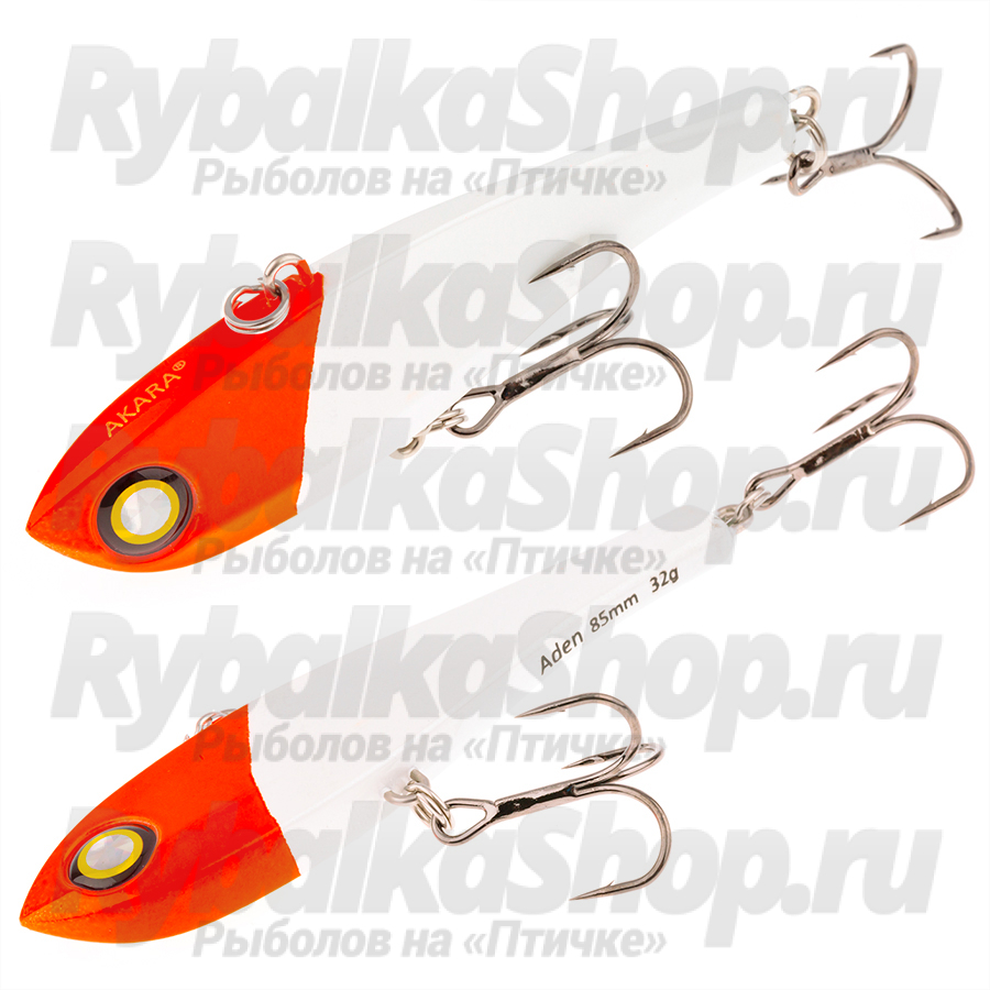Раттлин Akara ADEN выпускается в трех размерах: 52 мм и вес 10 грамм, 68 мм и 16 грамм, 85 мм и 32 грамма. Приманка отлично подходит для ловли, как зимой, так и летом. Отличительной особенностью при ловле в отвес, является планирующая игра на боку. То есть, после потяжки, Aden заваливается на бок и в таком положении опускается. При ловле в заброс обладает высокочастотными колебаниями способными привлечь хищника с дальних расстояний. Раттлин Akara ADEN способен ловить любую хищную рыбу, имеющуюся в водоеме. Особенно хорошо ловит судака. А в 68 размере, подойдет и для ловли прудовой форели. Оригинальное голографическое покрытие, дает дополнительное преимущество и несомненно привлекает рыбу.