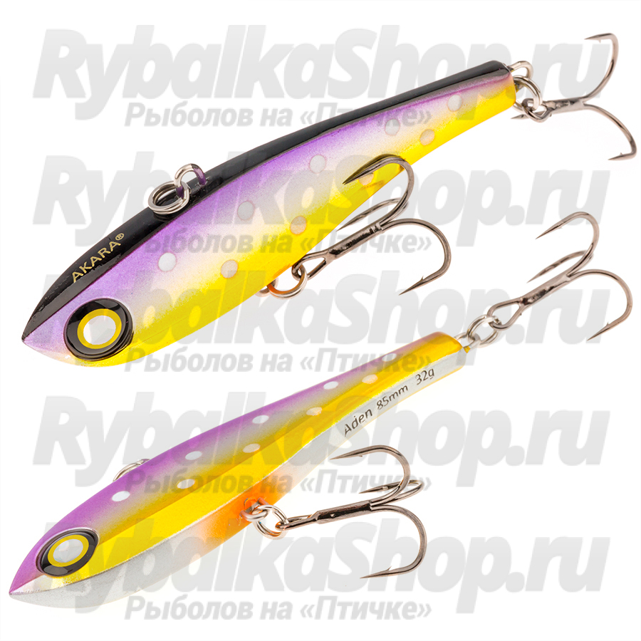 Раттлин Akara ADEN выпускается в трех размерах: 52 мм и вес 10 грамм, 68 мм и 16 грамм, 85 мм и 32 грамма. Приманка отлично подходит для ловли, как зимой, так и летом. Отличительной особенностью при ловле в отвес, является планирующая игра на боку. То есть, после потяжки, Aden заваливается на бок и в таком положении опускается. При ловле в заброс обладает высокочастотными колебаниями способными привлечь хищника с дальних расстояний. Раттлин Akara ADEN способен ловить любую хищную рыбу, имеющуюся в водоеме. Особенно хорошо ловит судака. А в 68 размере, подойдет и для ловли прудовой форели. Оригинальное голографическое покрытие, дает дополнительное преимущество и несомненно привлекает рыбу.