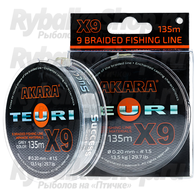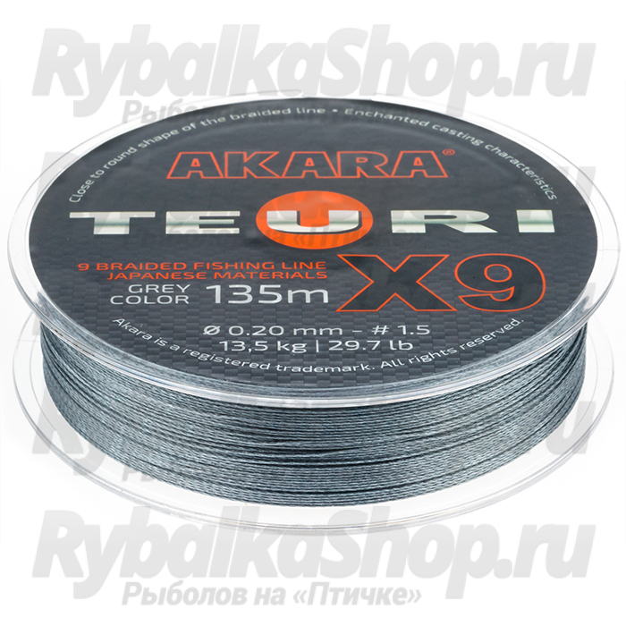 Akara Teuri X-9 135м - этот шнур сплетен из 9 нитей, по специальной технологии, благодаря чему, он получил более круглую форму. Шнур создан для того чтобы удовлетворить потребности рыболовов в качественном, надежном, прочном и недорогом шнуре. Рекомендован для ловли на джиг, дропшот, отводной, микро джиг, фидер, троллингом и для других видов рыбной ловли, где требуется четкий контроль приманки, качественный и прицельный заброс. Сплетен из нового современного волокна японского производства повышенной плотности. Отличается высокой прочностью и надежностью и подойдет практически для любых условий лова, в том числе для ловли в местах, где высока вероятность зацепов.