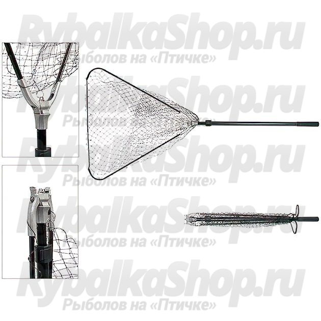 Подсачек Akara PF-4 L230 - телескопический, треугольный, с сеткой из лески, используется при извлечении рыбы из воды на финальной стадии вываживания. Имеет прочную сетку, которая не наносит повреждений рыбе и не впитывает запахи. Основное преимущество модели PF-4, это металлическое крепление фиксации головы, что делает подсачек надежным. П