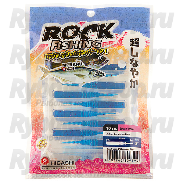 Силиконовая приманка Higashi Leech Worm 2" цвет #Luminous Blue